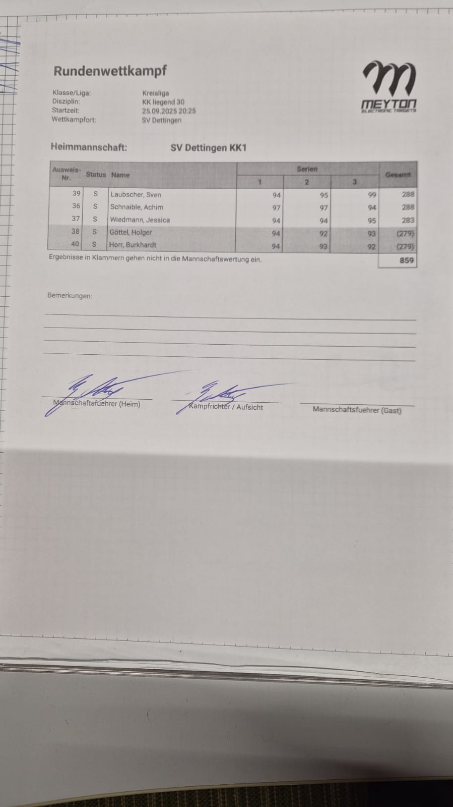Bester Schütze: Sven Laubscher (288 R.), gefolgt von Achim Schnaible (288 R.) und Jessica Wiedmann (283 R.)